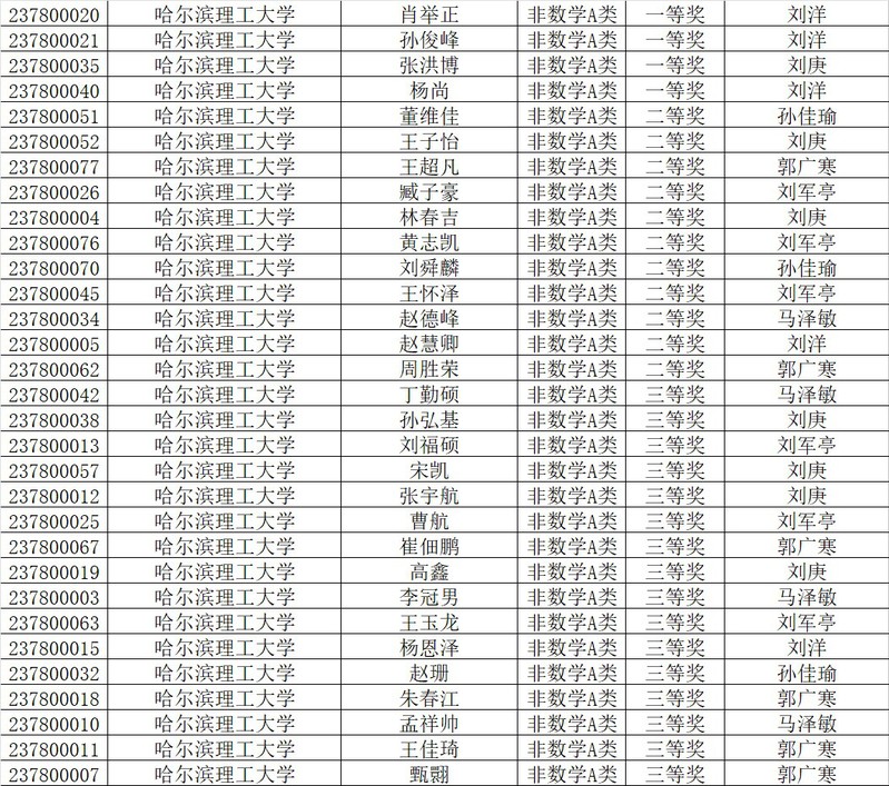 表1 全国大学生数学竞赛(国家奖)获奖名单