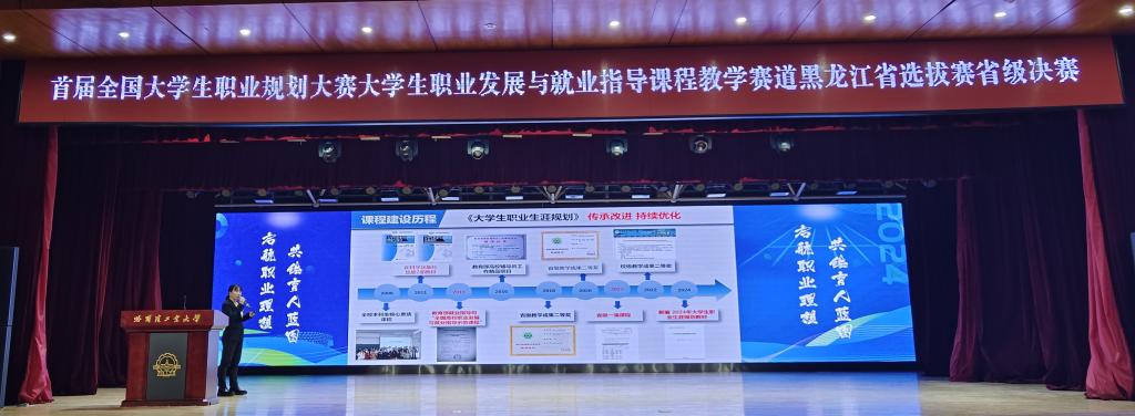 3月11日,“首届全国大学生职业规划大赛大学生职业发展与就业指导课程教学赛道”黑龙江省选拔赛省级决赛落下帷幕,我校《大学生职业生涯规划》课程授课教师、经济与管理学院董媛媛教授晋级全省前十强,荣获总决赛二等奖,这是我校在就业指导类课程教学比赛中取得的最好成绩。