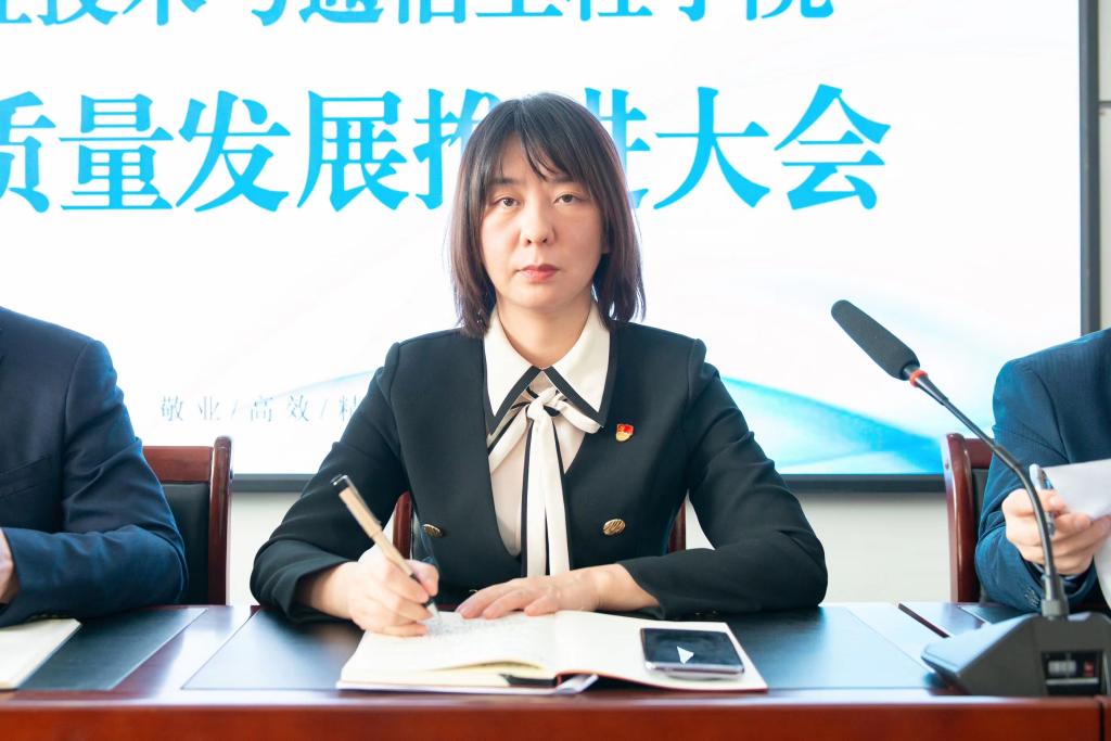 为进一步统一思想、凝聚共识,着力推进学院各方面事业高质量发展,3月8日,测通学院在教学主楼G1012室召开2024年度高质量发展推进大会。学院党委书记黄春丽出席会议并讲话,院长吴海滨对学院工作进行总体部署,党委副书记张宏磊、副院长盖建新、孙晓明、孙慧出席会议,会议由吴海滨主持。