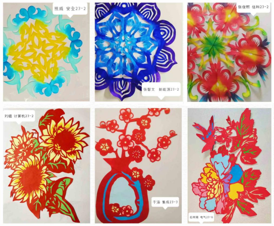 剪纸艺术不仅具有审美的艺术性,更是融合了精湛的手工技艺,是综合性很强的艺术形式。国潮民间剪纸艺术实践,既让同学们近距离感受到传统艺术的独特魅力,又帮助他们掌握了剪纸艺术的工艺技法,让更多同学了解、认同和享受传统文化,推动非遗文化的传承和创新性发展。