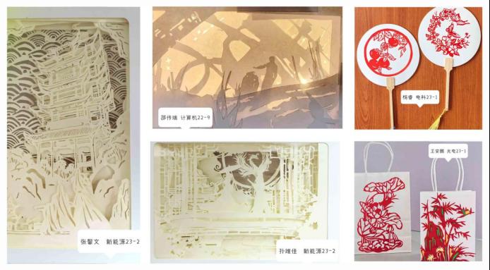 同学们在传统剪纸的基础上,通过观察和分析,将传统剪纸与影视、动漫、地标建筑、摄影作品、馆藏文物等元素相结合,丰富了国潮剪纸的表现形式,为传统艺术注入新的生机与活力,赋予了剪纸新时代背景下新的价值。