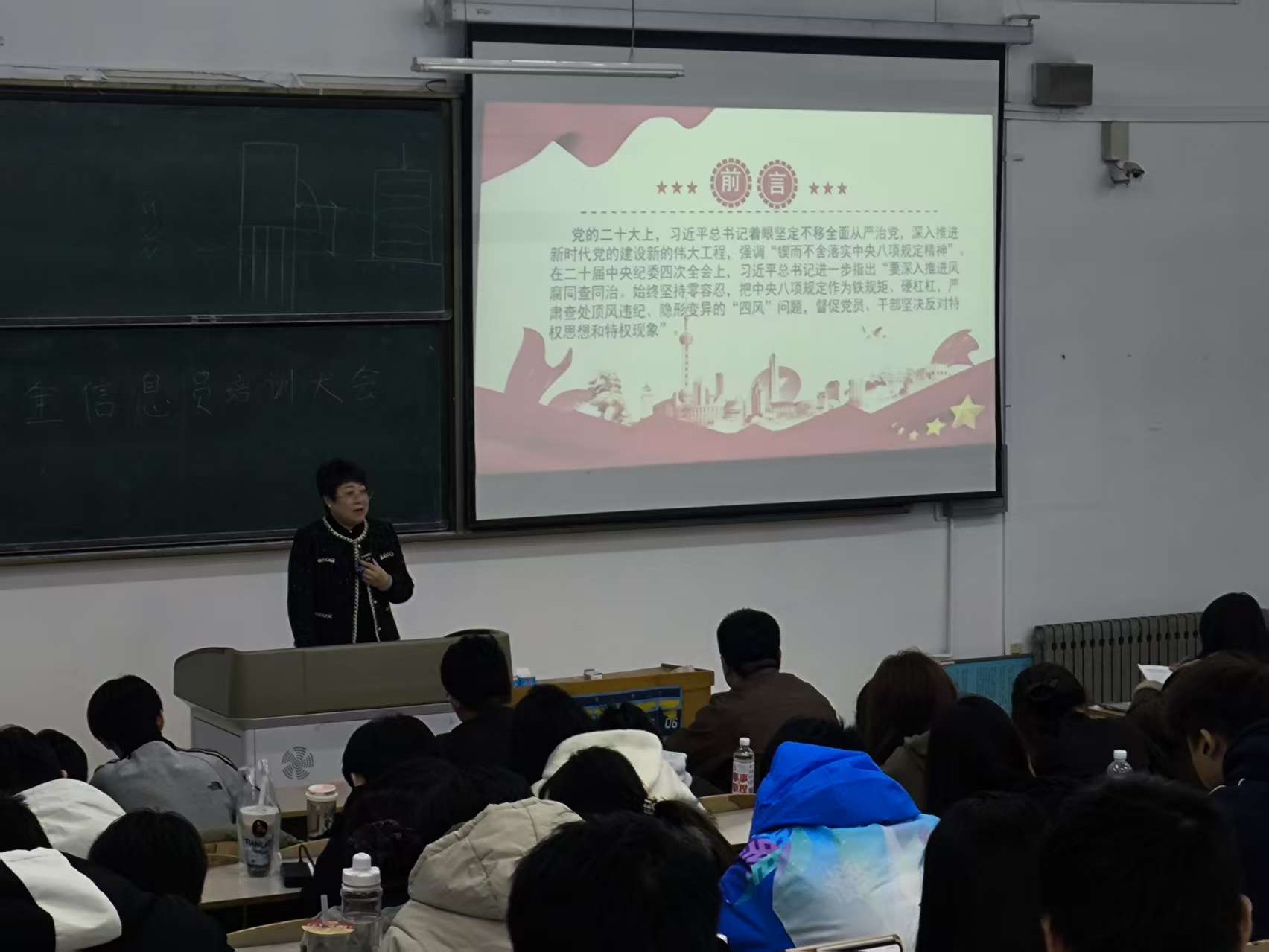 董丽敏以《严守中央八项规定精神、争做新时代合格党员》为题,详细解读了中央八项规定的具体内容和精神实质,结合实际案例剖析了违反规定的典型问题,教育引导全体学员要严于律己,筑牢思想防线,持续巩固拓展作风建设成效,营造风清气正的良好政治生态。