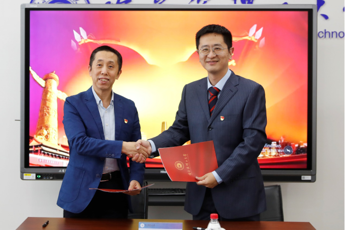 在党建联盟成立仪式上,孙广路与邴歌今分别代表哈尔滨理工大学计算机科学与技术学院党委、中国联通哈尔滨软件研究院党委签署了产学研党建联盟合作协议。黄海与牟海刚参加产学研一体化人才培养基地授牌。
