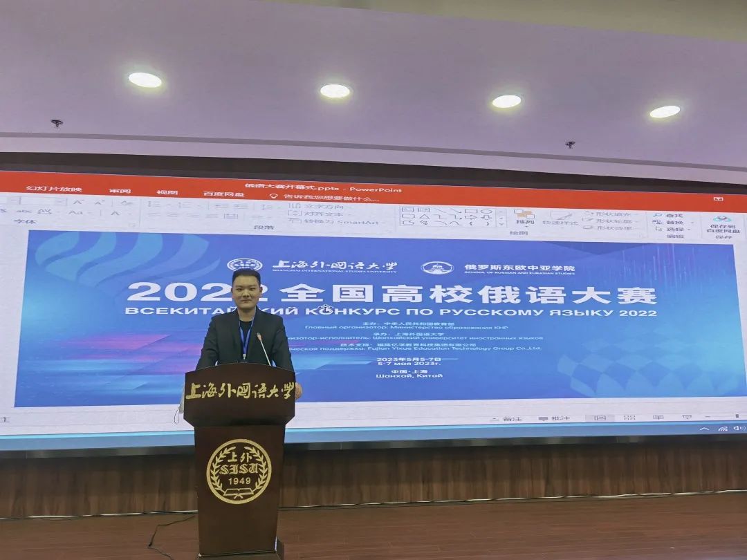 为深入学习贯彻习近平新时代中国特色社会主义思想,持续推进我国与欧亚地区国家及上海合作组织框架下的教育交流合作,着力培养“讲好中国故事”的俄语人才,由教育部国际合作与交流司主办、上海外国语大学承办的2022全国高校俄语大赛决赛在上海举行。外国语学院俄语19-2班赵超越同学获三等奖。