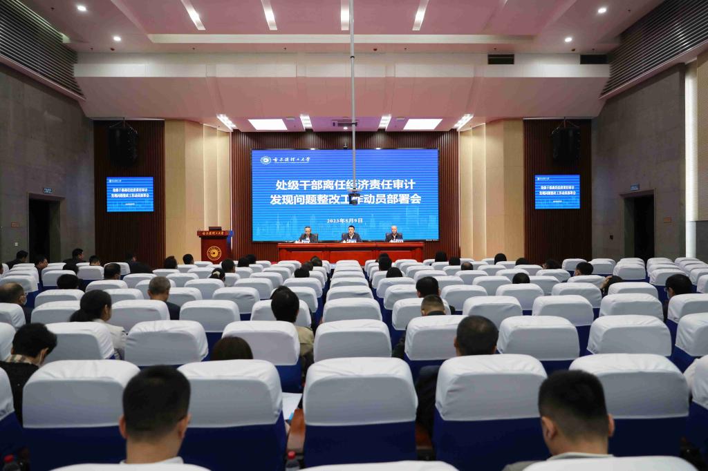 为深入开展学习贯彻习近平新时代中国特色社会主义思想主题教育和“工作落实年”活动,扎实做好处级干部离任经济责任审计发现问题的整改工作,切实提升审计整改质量和效果,5月9日上午9时,学校在新教学主楼五楼报告厅召开处级干部离任经济责任审计发现问题整改工作动员部署会,校长刘侠,党委常委、纪委书记孙树海,党委常委、副校长臧永军出席会议,会议由臧永军主持。