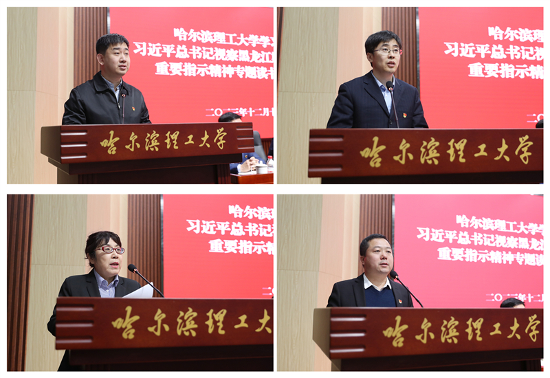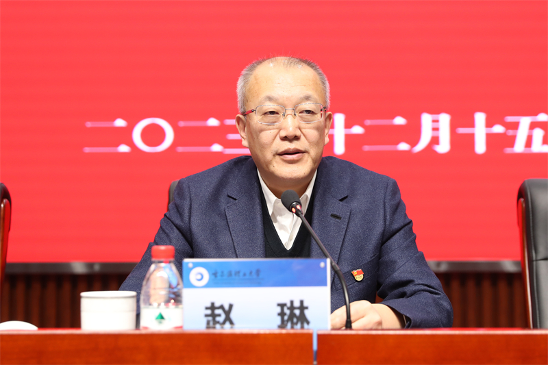 赵琳强调,要进一步提高政治站位,在深化理论武装上持续用力,坚定拥护“两个确立”,做到“两个维护”,切实把总书记的关心关怀转化为感恩奋进的强大动力,教育引导广大干部师生坚定不移听党话、感党恩、跟党走。要进一步增强使命担当,在“龙江要振兴,理工有行动”上持续用力,进一步突出办学特色,坚持学科导向,科研先行,在强化内涵建设上聚焦用力,在维护国家“五大安全”,加快建设“六个龙江”,推动实现“八个振兴”中彰显理工担当。要进一步深化能力作风建设,在锤炼“扎扎实实、踏踏实实、求真务实”作风上持续用力。全校党员干部要牢固树立和践行正确政绩观,进一步解放思想,坚持问题导向、目标导向,切实以思想解放、观念更新引领发展突围,以更加昂扬的精神状态、更加务实的工作作风、更加自觉地拼搏担当,推动习近平总书记重要讲话重要指示精神落细落地、见行见效。要进一步聚焦学习成效,在责任落实上持续用力。要对标对表习近平总书记重要讲话重要指示,以“时时放心不下、紧盯不放”的责任感、“始终如履薄冰、时不我待”的紧迫感、“扎扎实实、踏踏实实、求真务实”的优良作风种好“责任田”,把学习成效切实转化为推动学校高质量内涵式发展的生动实践,推动学校发展取得新业绩、新突破。