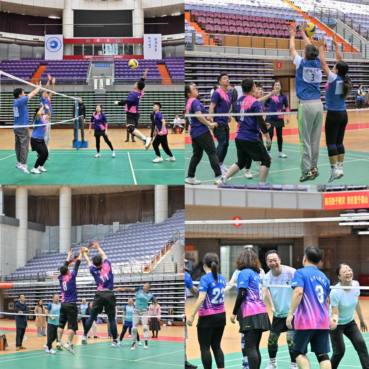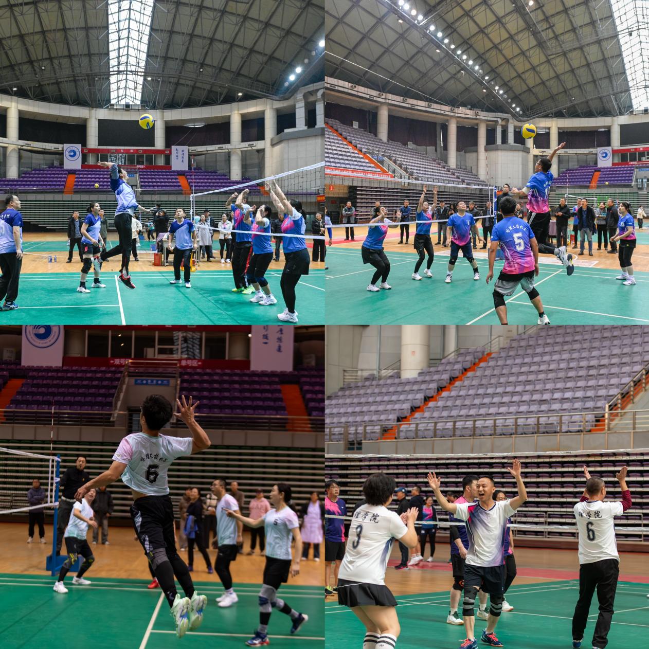 本次赛事以高规格标准打造,专业裁判队伍确保赛事公平竞技,同步部署的医疗保障则为活动全程筑牢安全防线。比赛汇聚了来自校机关、机械学院、材化学院、电气学院、计算机学院、测通学院、理学院、经管学院、外语学院、马院-后勤联队12支代表队。赛场上,各参赛队伍秉承“友谊第一、比赛第二”的体育精神,展开了激烈而友好的角逐。发球、垫球、扣杀、拦网……运动员们身手敏捷,配合默契,精湛的球技和顽强的拼搏精神赢得了现场观众的阵阵喝彩。整个比赛过程紧张激烈、扣人心弦,又始终洋溢着团结、和谐、欢乐的气氛,充分展现了我校教职工昂扬向上的精神风貌和强大的团队凝聚力。