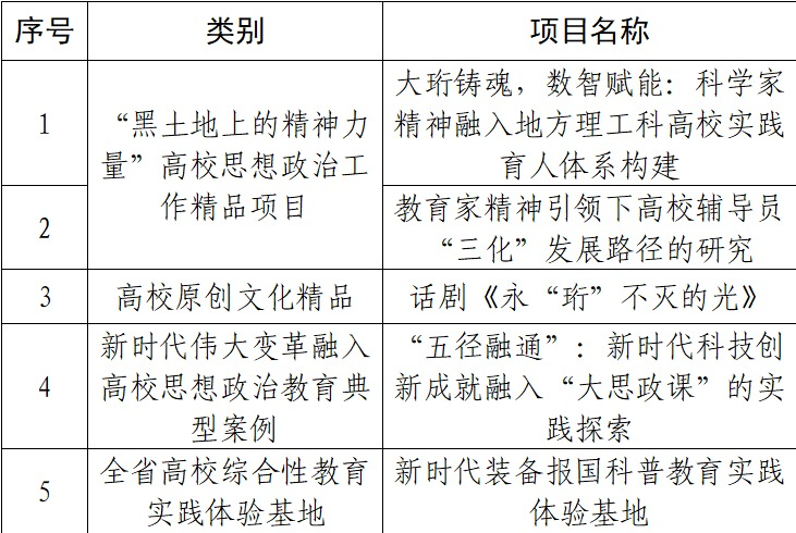 学校五个项目入选黑龙江省2025年度“黑土铸魂”高校思想政治工作质量提升综合改革与精品建设项目