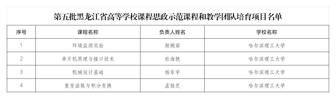 学校第五批黑龙江省高等学校课程思政示范课程和教学团队培育项目入选名单