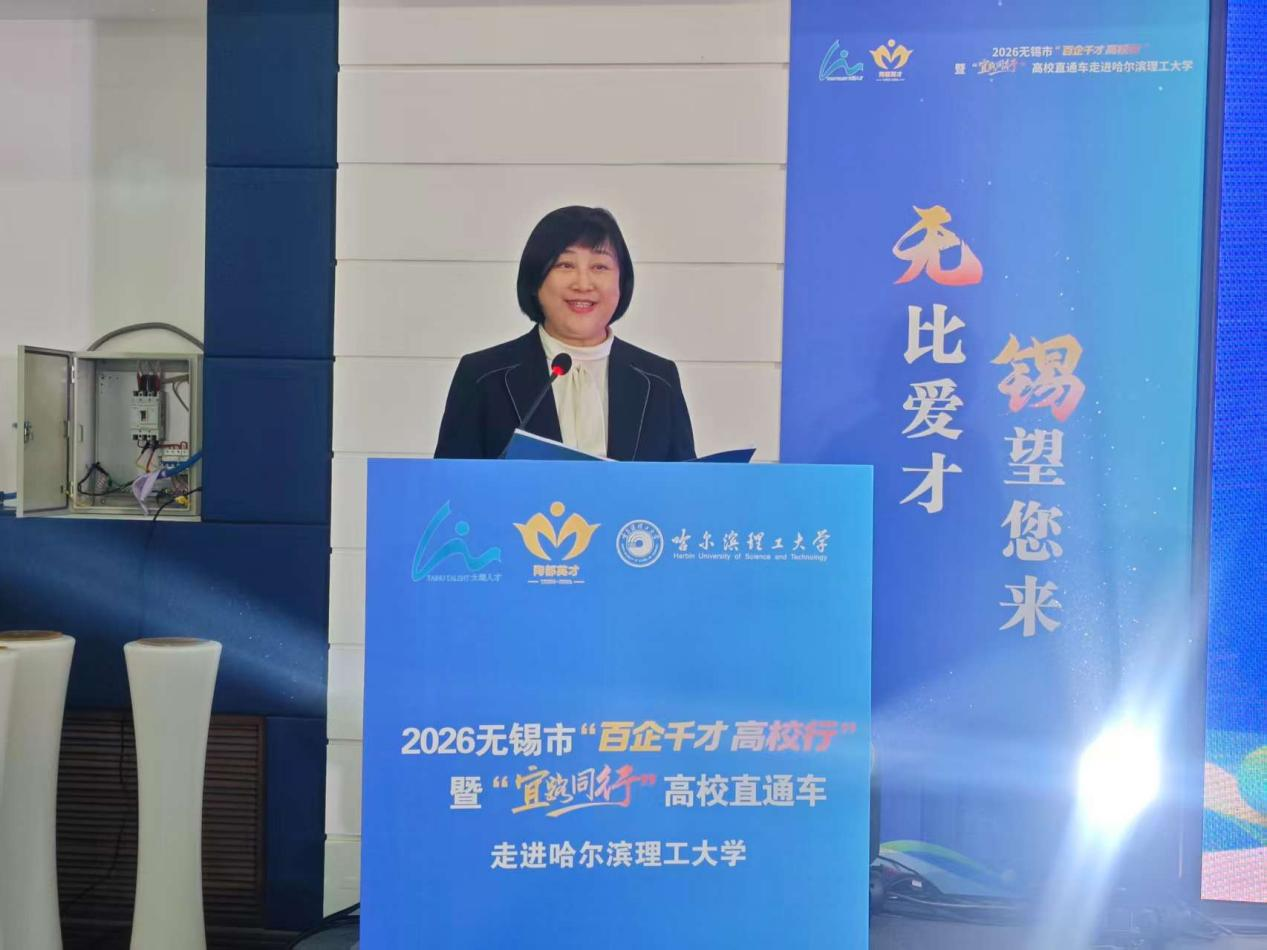 张艳君代表学校对黄烨旻一行的到来表示热烈欢迎,详细介绍了我校发展沿革与专业特色。她表示,此次活动为校地校企搭建了高效对接桥梁,学校将以此为重要契机,与无锡、宜兴两地同心携手、聚力前行,进一步推动人才培养方向与地方产业发展需求精准适配,全力打通毕业生就业与地方人才引进的双向通道,携手谱写校地合作、产教融合新篇章。