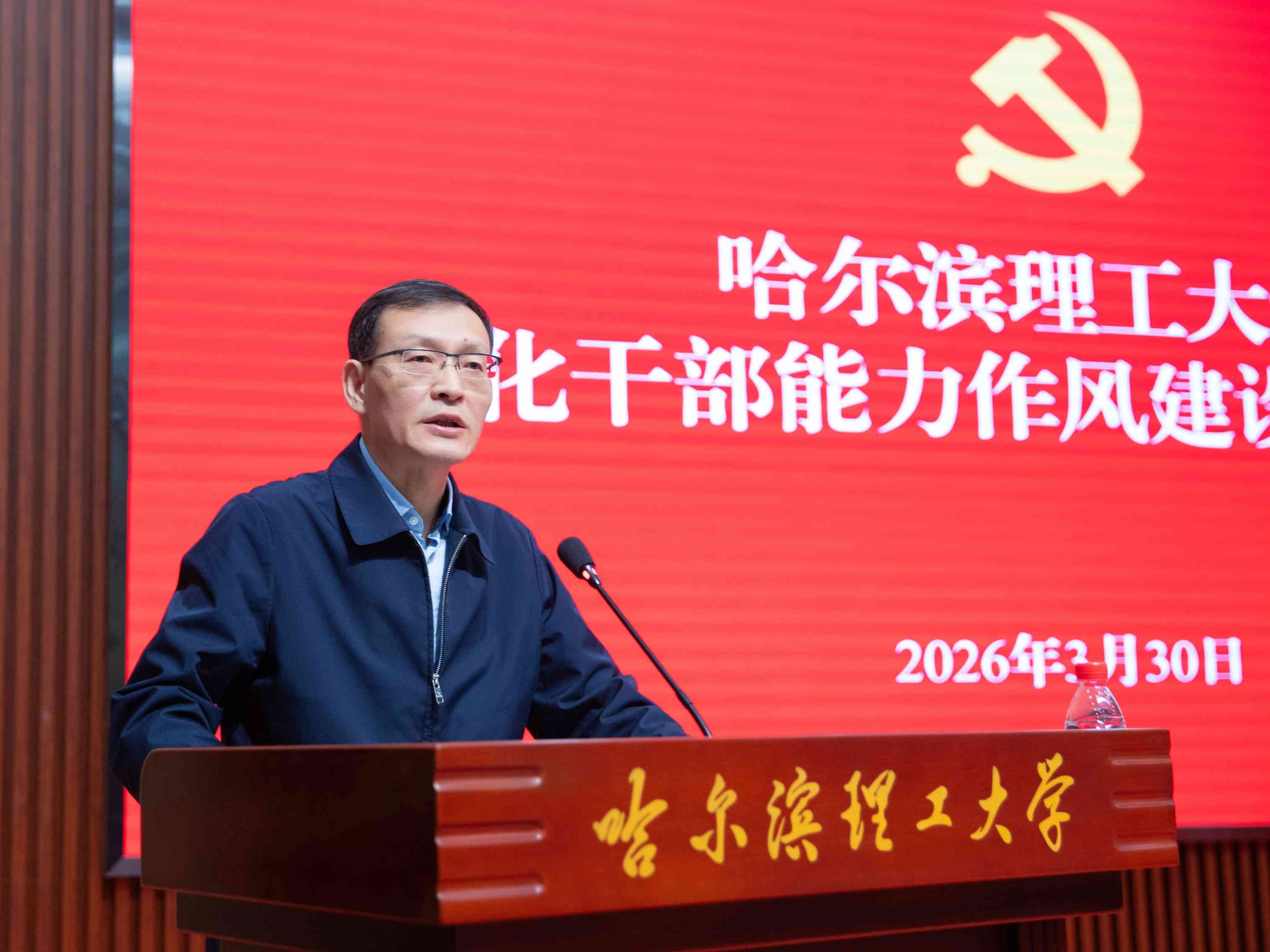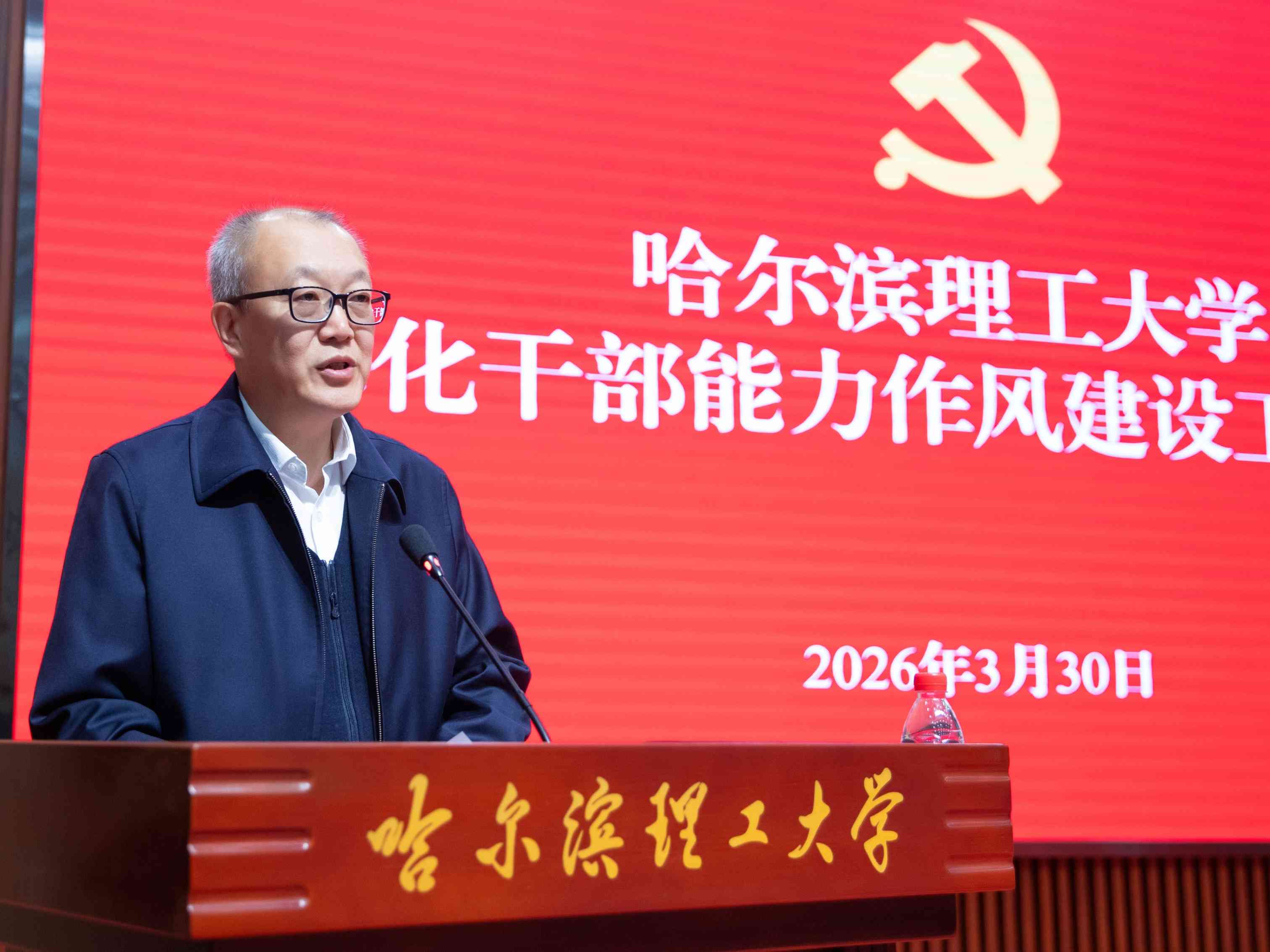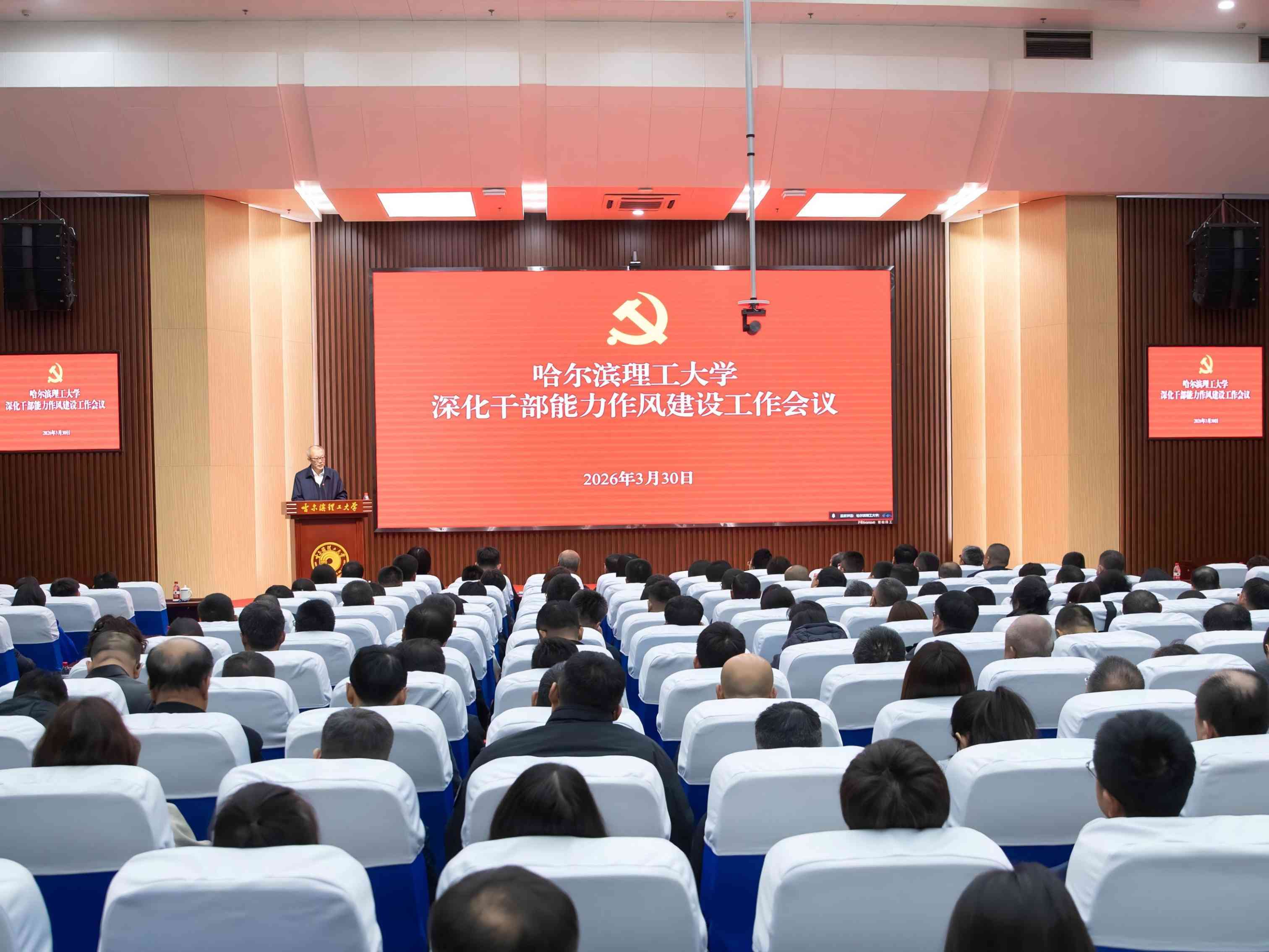 3月30日,学校召开2026年度深化能力作风建设工作会议。会议深入学习贯彻习近平总书记关于能力作风建设的重要论述,全面落实全省深化能力作风建设工作会议精神,总结工作、分析形势,部署学校年度深化干部能力作风建设重点任务。校党委书记赵琳出席会议并讲话,党委副书记、工会主席郭加利传达全省深化能力作风建设工作会议精神,并对《哈尔滨理工大学深化干部能力作风建设2026年实施方案》进行说明,全体校领导、全校正科级及以上干部参加会议。