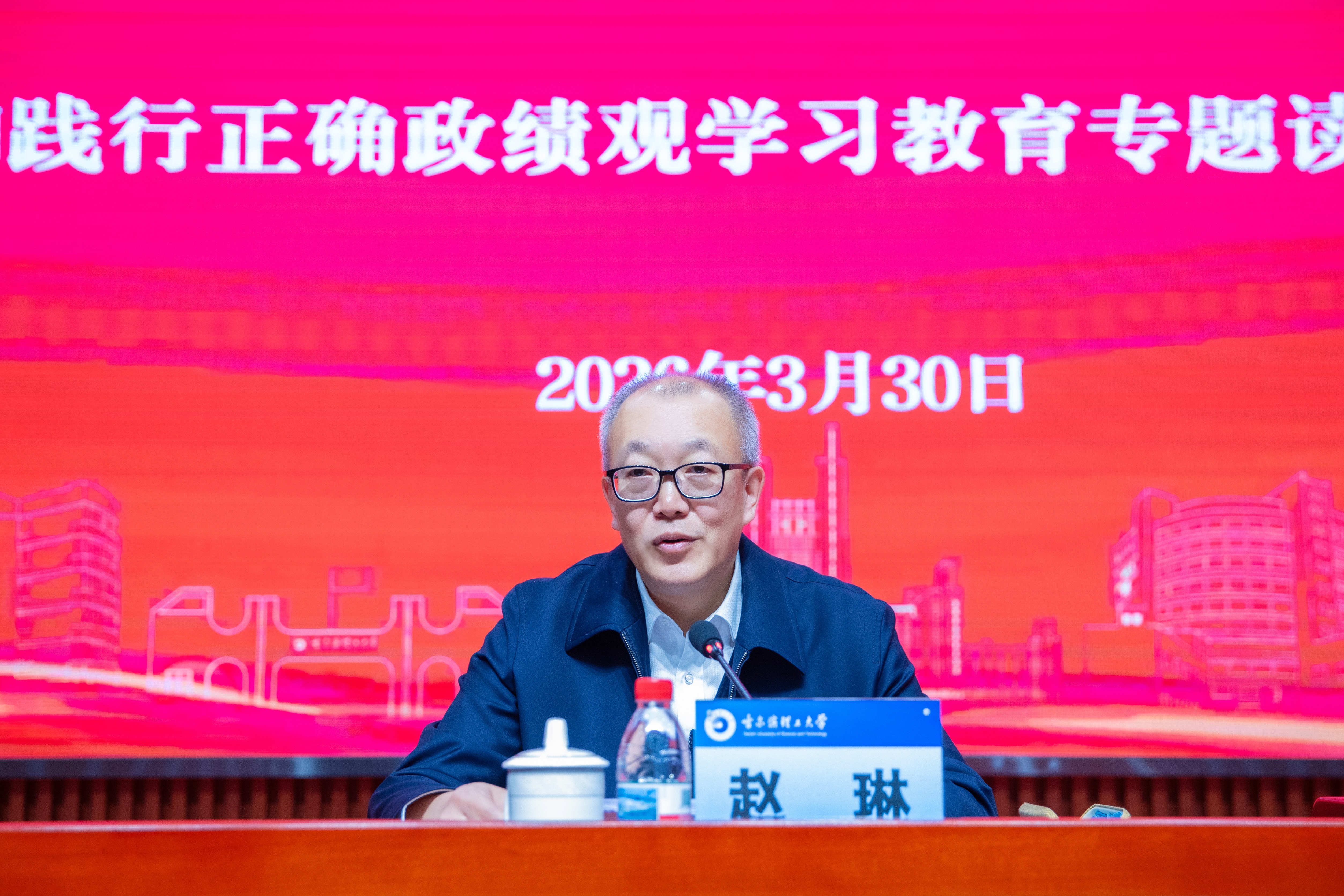 赵琳指出,要深刻认识在全党开展树立和践行正确政绩观学习教育,是以习近平同志为核心的党中央作出的重大决策部署,是贯彻落实党的二十届四中全会战略部署、推动“十五五”开好局起好步的必然要求。他强调,全体领导干部要进一步提高政治站位,切实把思想和行动统一到“立党为公、为民造福、科学决策、真抓实干”的总要求上来,以系统深入学习淬炼思想根基,确保学查改一体推进,以正确政绩观推动学校高质量发展。