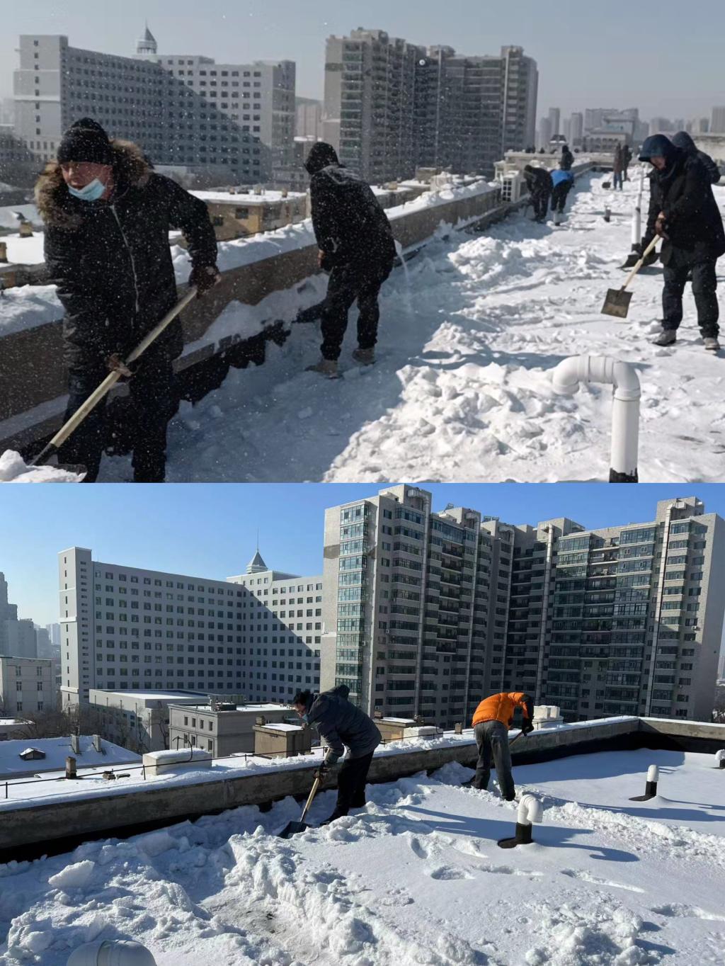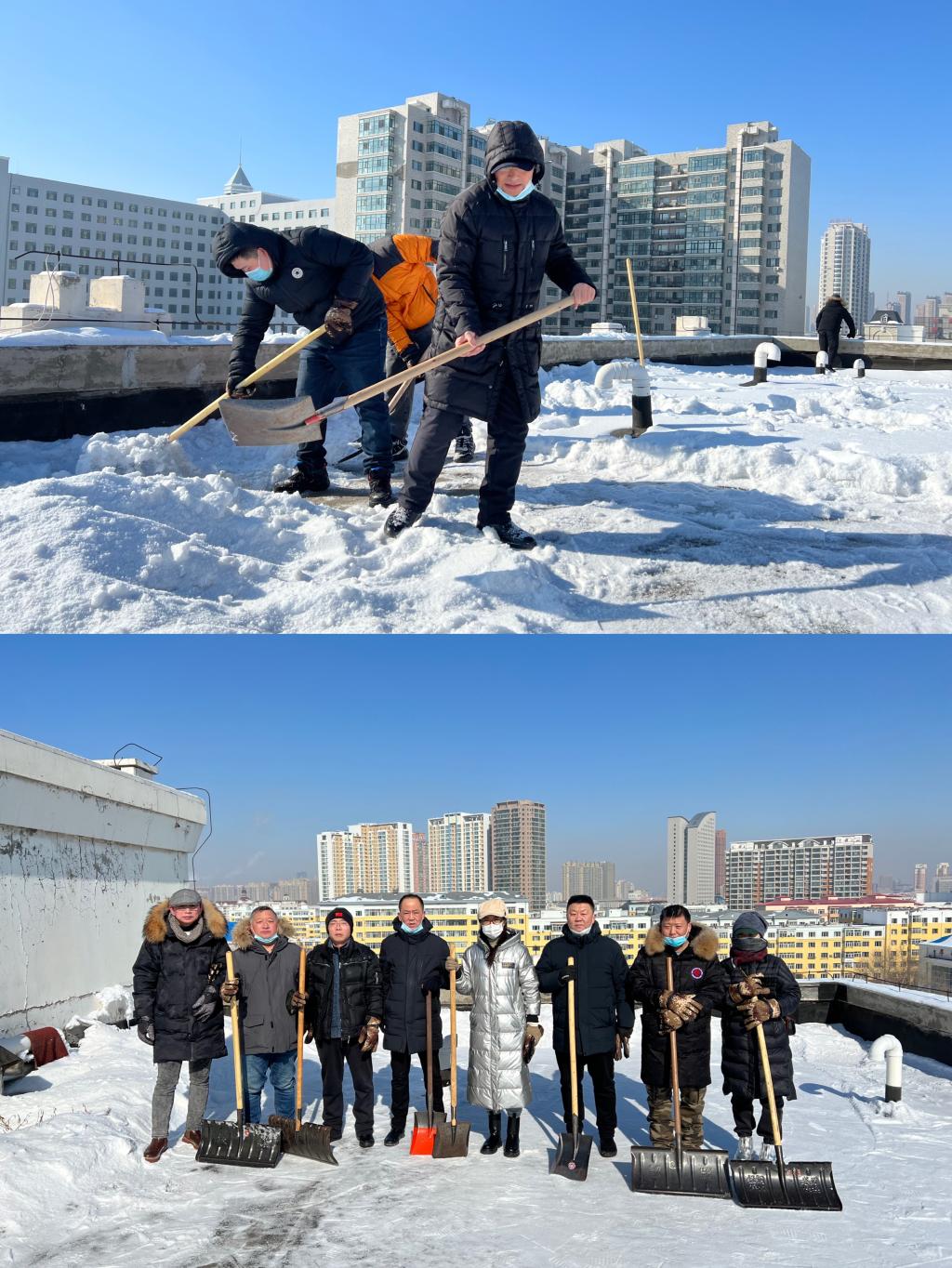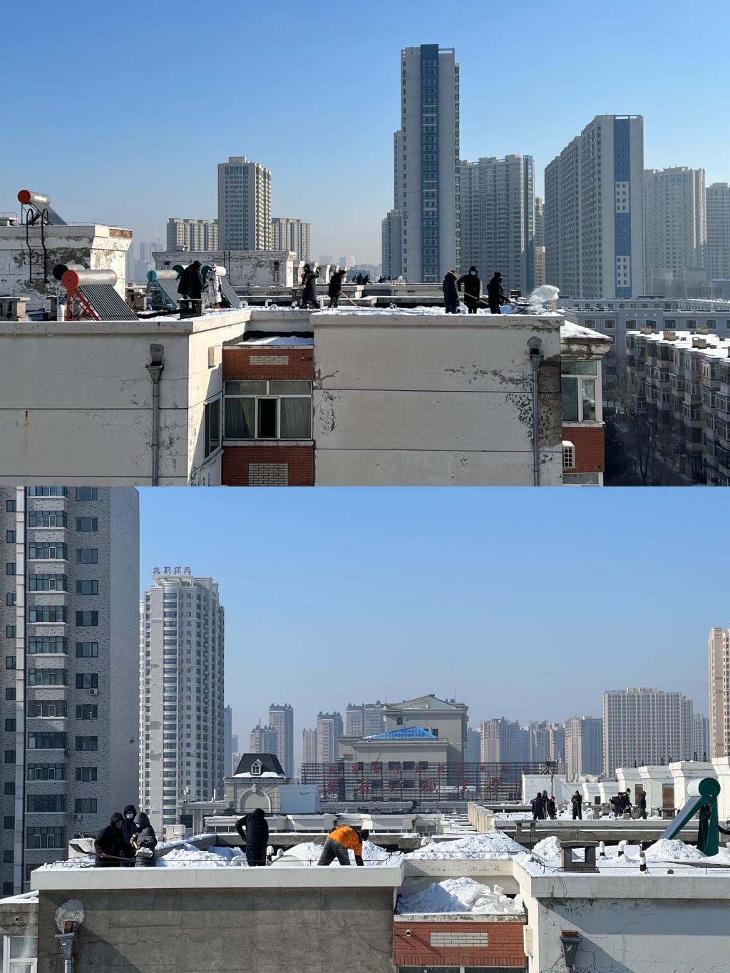 这次实践活动提前消除了积雪残冰坠落的安全隐患并有效解决了顶层教职员工房屋渗水滴漏的困扰,全体后勤党员用实际行动践行了初心使命,为教职员工维护安心、暖心、舒心之家。