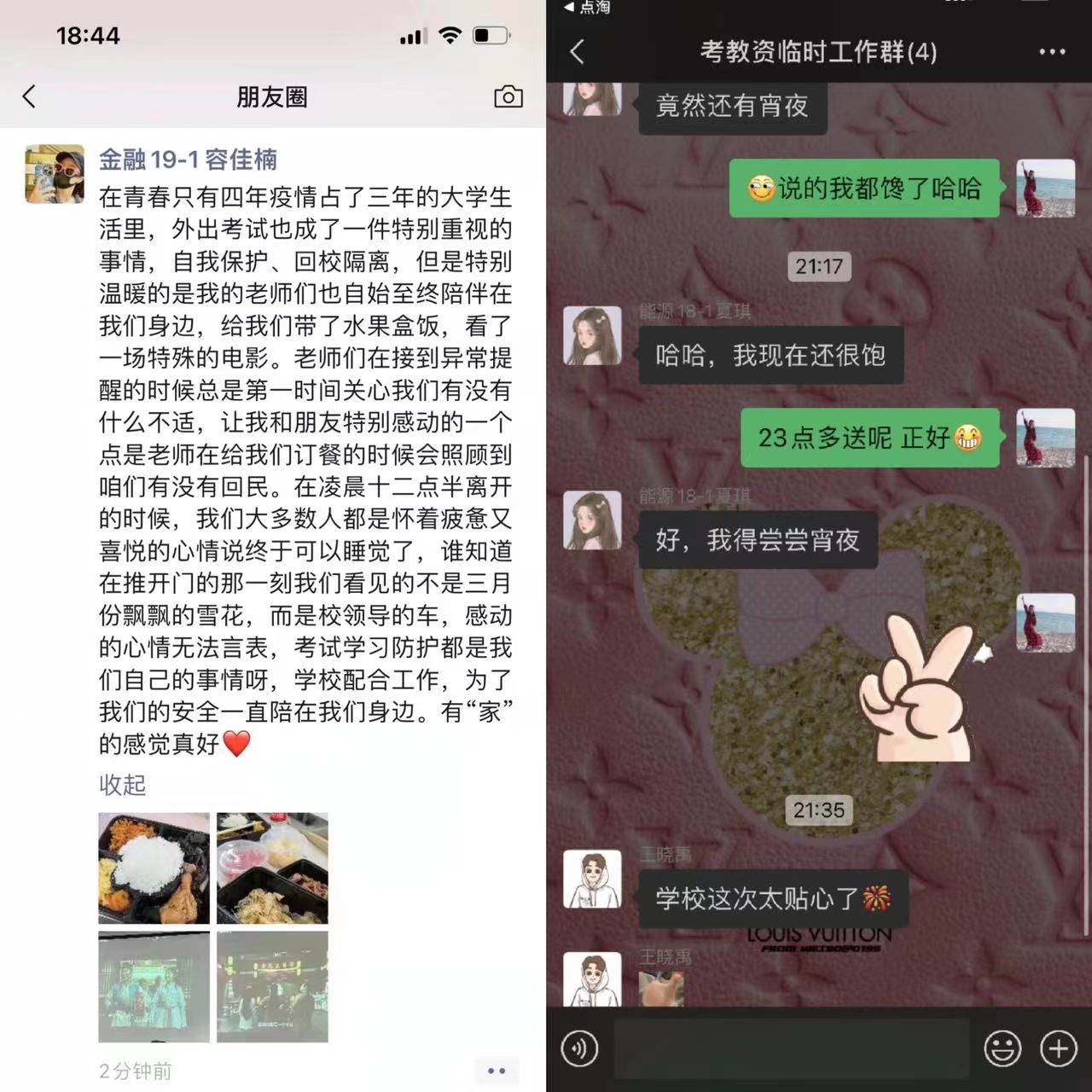 哈理工学子在此次考试中不仅体会到“学校在你身后”的安全感,更感受到来自学校的关怀、关照。很多同学在朋友圈为学校点赞,纷纷表示:“乘坐学校提供的‘爱心专车’,满满的安全感!”“感谢学校的暖心举动,谢谢老师一直陪伴着我们!”