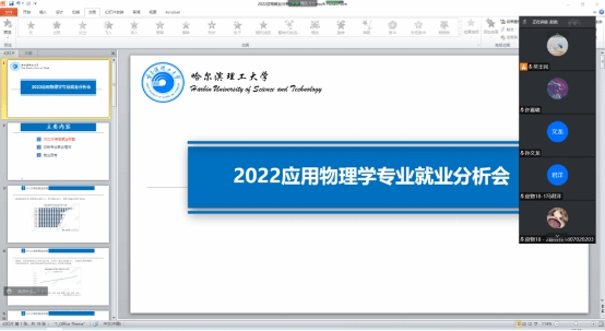 理学院应用物理学专业目前就业势头良好,为了帮助目前还没有完成就业的15名学生了解就业形势、树立正确的就业观,4月1日,应用物理系在线召开了2022届毕业生就业推进会会,系主任吴丰民老师,赵波老师,毕业生辅导员左欣鑫老师及15名大四学生参加此次会议。