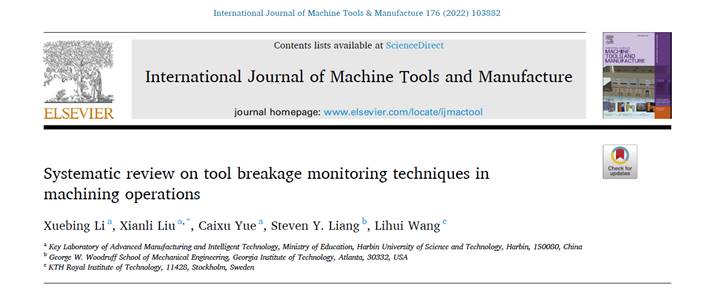 近日,机械动力工程学院刘献礼教授团队在机械制造领域Top期刊International Journal of Machine Tools and Manufacture(IJMTM,中科院1区,即时影响因子10.11)发表关于机械加工中刀具破损监测的长篇综述文章:“Systematic review on tool breakage monitoring techniques in machining operations”。机械动力工程学院李雪冰博士为该文第一作者,刘献礼教授为通讯作者,哈尔滨理工大学为第一完成单位。该文的共同合作作者有我校的岳彩旭教授、美国佐治亚理工学院的Steven Y. Liang教授和瑞典皇家理工学院的Lihui Wang教授。论文链接:https://doi.org/10.1016/j.ijmachtools.2022.103882。