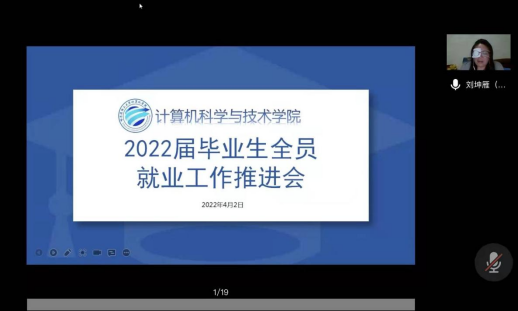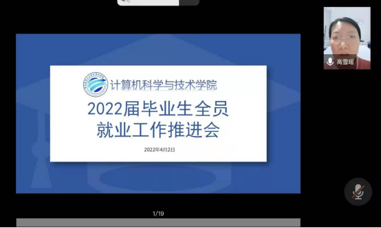 为进一步加强和促进学院毕业生就业工作,推动构建全员就业工作体系,促进毕业生高质量和更加充分就业,分析研判当下就业形势,研讨出台相关就业举措,确保疫情防控期间学院毕业生就业工作稳步推进。4月2日晚19时,计算机科学与技术学院线上召开了2022届毕业生全员就业工作推进会,学院就业工作领导小组成员、全体教师参加会议,学院党委书记孙广路主持会议。