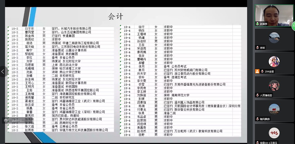 毕业班辅导员赵革伟通报毕业生毕业去向落实情况
