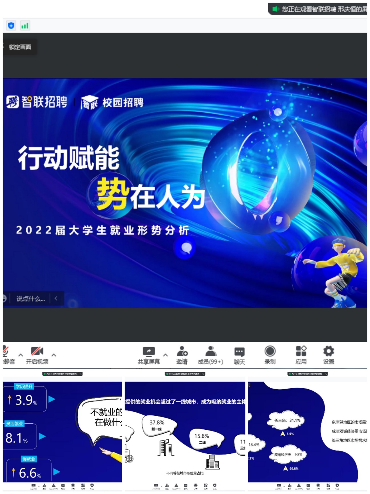 学院邀请智联招聘校园招聘事业部渠道高级经理、国家生涯规划师、南开大学特聘讲师、智联招聘特聘讲师邢庆恒对2022届大学生就业形势进行了分析,通过智联招聘平台大数据分析了当前的就业趋势以及求职现状,从第三方招聘平台视角向毕业生及家长提出了合理化建议。