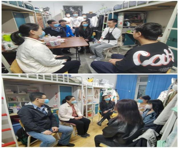 4月22日晚,我院党委书记顾大兴、党委副书记蔡野、辅导员于海滨走访了毕业班学生宿舍,并看望了研究生毕业因疫情未离校学生,为同学们送去关心和问候。