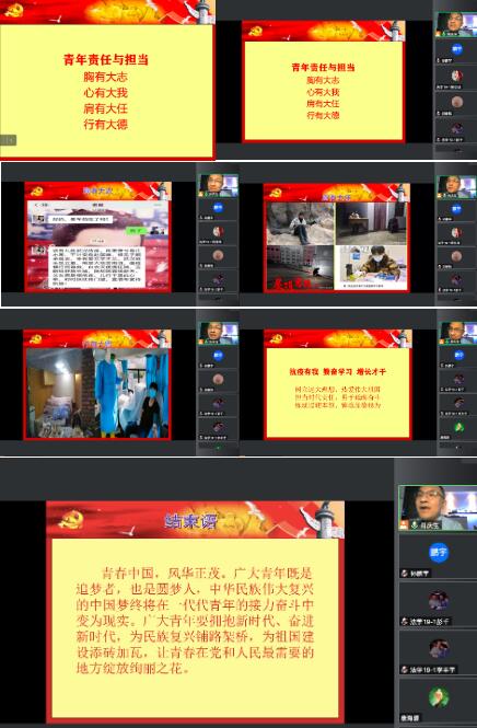 为切实做好疫情防控期间学生的思想引领,增强学生抗击疫情的信心,4月23日晚19:00,马克思主义学院通过钉钉平台为学生上了一堂以“战‘疫’之下青年学生的责任、使命与担当”为主题的思政课,马克思主义学院党委书记肖庆生为同学们倾情讲授,学院党委副书记陈迪男主持会议,全体学生线上参加。