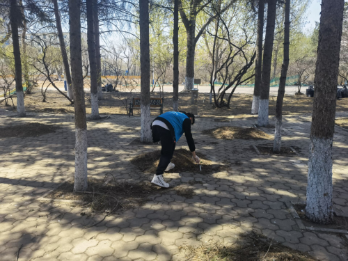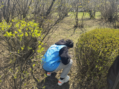 4月29日11时,学院组织了25名志愿者在做好疫情防控基本前提下,进行校园清扫工作。有的志愿者沿街将路边的烟头、纸片等垃圾捡起,装进随身垃圾袋中;有的志愿者将区域内散乱的自行车按要求摆放整齐;有的志愿者将绿化带中的枯枝、落叶等杂物清理干净。劳动现场一片繁忙,大家热情高涨,认真细致的对负责区域进行打扫与清理,做到地面无污渍、无纸屑、无杂物,以辛勤的汗水迎接“五一”劳动节的到来。