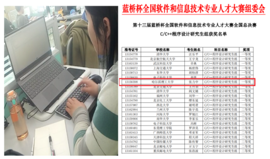 张力中同学获得获得“C/C++程序设计研究生组”全国一等奖