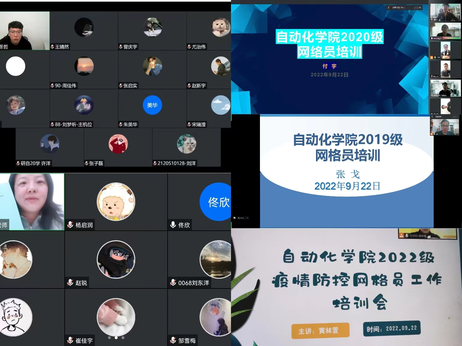 为进一步提升自动化学院疫情防控网格员理论水平和业务能力,增强工作责任感。自动化学院于9月22-27日各年级开展疫情防控网格员培训会议,学院145名网格员全部参加培训会议。