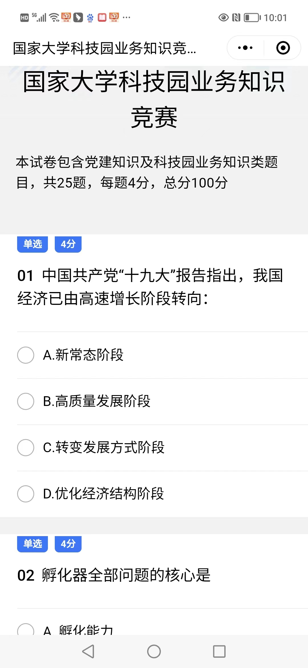 本次业务知识竞赛试题从国家大学科技园管理办公室建立的“业务知识题库”中随机抽取,试题内容涉及党建知识和科技园业务知识,包括单选题和多选题等多种题型,参加竞赛人员通过二维码进入网上答题系统进行答题。竞赛结束后,评选出了一等奖1名,二等奖3名,三等奖若干名。