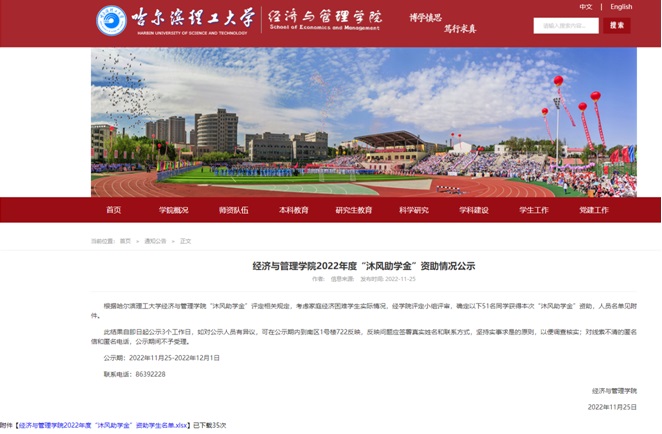 近期根据黑龙江省省教育厅、市疫情防控指挥部有关精神,为保障学生错峰有序离校、安全顺利返乡,学校于11月末起精心组织学生离校返乡工作。经济与管理学院积极响应学校号召,再次启动“沐风助学金”为学院家庭经济困难学生提供“爱心助学金”和“返乡交通补助”。此次“沐风助学金”的资金主要来自于2021年学院教师的爱心捐款。