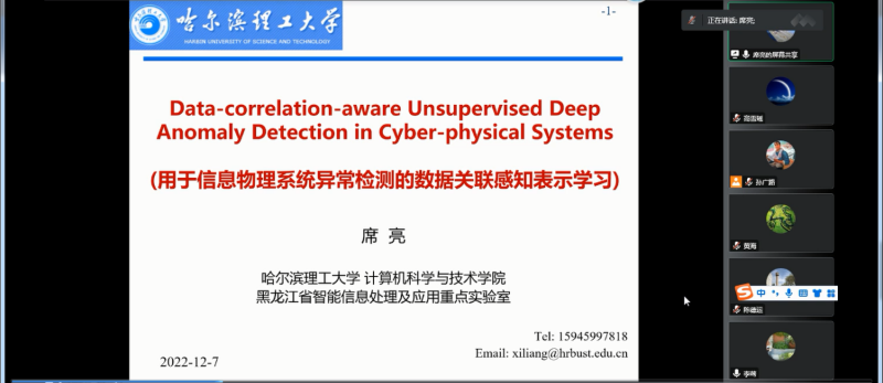 12月7日下午,黑龙江省智能信息处理及应用重点实验室学术委员会会议在线上召开。哈尔滨工业大学邬向前教授,清华大学信息科学技术国家实验室汪东升教授,哈尔滨工程大学蔡成涛教授,哈尔滨理工大学陈德运教授,哈尔滨工业大学王宏志教授,中国科学院自动化研究所模式识别国家重点实验室刘康研究员,中国人工智能学会理事、哈尔滨工业大学(深圳)徐睿峰教授、东北林业大学景维鹏教授、哈尔滨理工大学孙广路教授等重点实验室学术委员会委员出席会议。学校科技处处长康守强、副处长黄韬,计算机学院院长黄海,重点实验室部分骨干教师参加了会议。