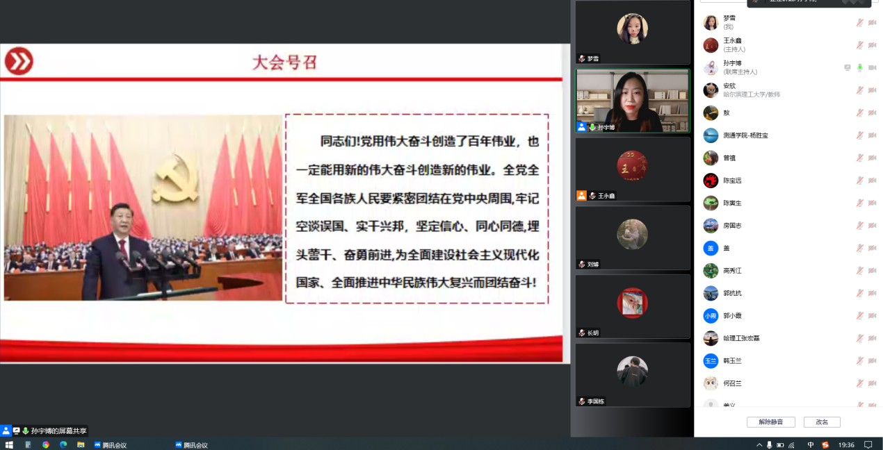 为深入学习贯彻党的二十大精神,按照学校党委、宣统部《关于在全校范围内开展党的二十大精神宣讲工作的通知》精神及相关要求,测通学院对接并邀请校宣讲团成员、马克思主义学院孙宇博老师,以“学习宣传贯彻党的二十大精神,书写全面建设社会主义现代化国家崭新篇章”为题,于12月13日晚19:00通过线上向测通学院师生开展宣讲。此次党课由测通学院党委副书记张宏磊主持,测通学院领导班子、各系部主任、全体教师党员、全体辅导员及学生党支书书记、学生代表参加本次活动。