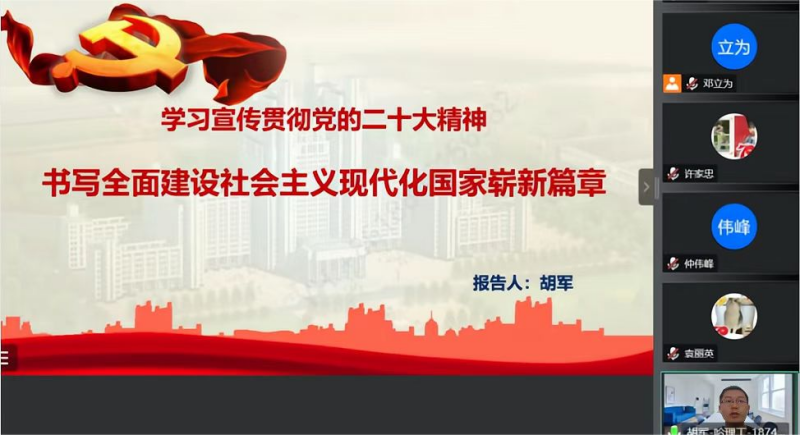 为全面深入学习贯彻党的二十大精神,落实《中共哈尔滨理工大学委员会关于做好党的二十大精神宣讲工作的实施方案》,学校宣讲团成员自动化学院院长胡军、党委副书记艾荻分别于12月21日、22日在自动化学院自动化系党支部、全体师生党支部开展了党的二十大精神宣讲。