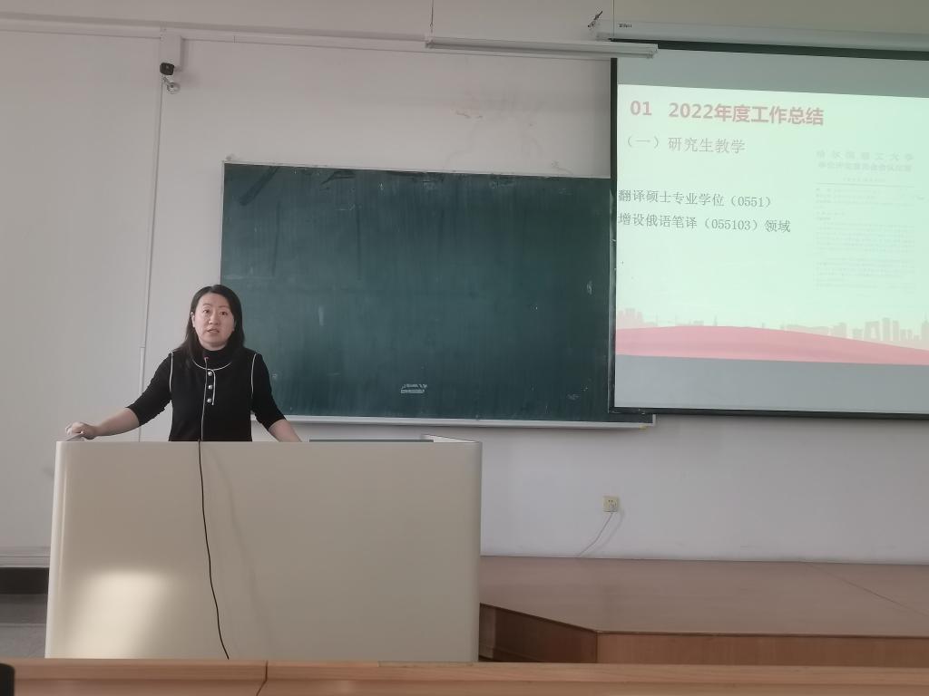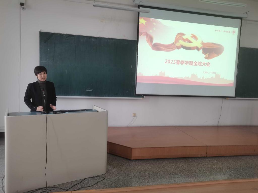 院长马艳辉带领大家回顾了学院2022年专业发展、学科评估、人才培养、留学生工作中取得的成绩,指出了当前学院发展瓶颈问题,要求全体教师提高站位,对标学校学院发展要点,同向同行,迎难而上,要以新气象、新作为推动学院高质量发展取得新成效。