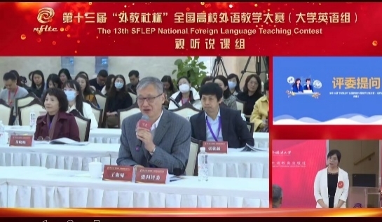 按照决赛规则,参赛教师进行授课设计。授课结束后,选手回答评委的提问。关宁老师与来自全国共30个赛区的特等奖选手同台竞技,沉着应对,在规定时间内顺利完成说课、授课和回答问题三个环节。比赛全程在线直播,在线观看人数逾30万人次,外国语学院组织教师线上观赛,充分利用这一难得的机会向选手们学习。