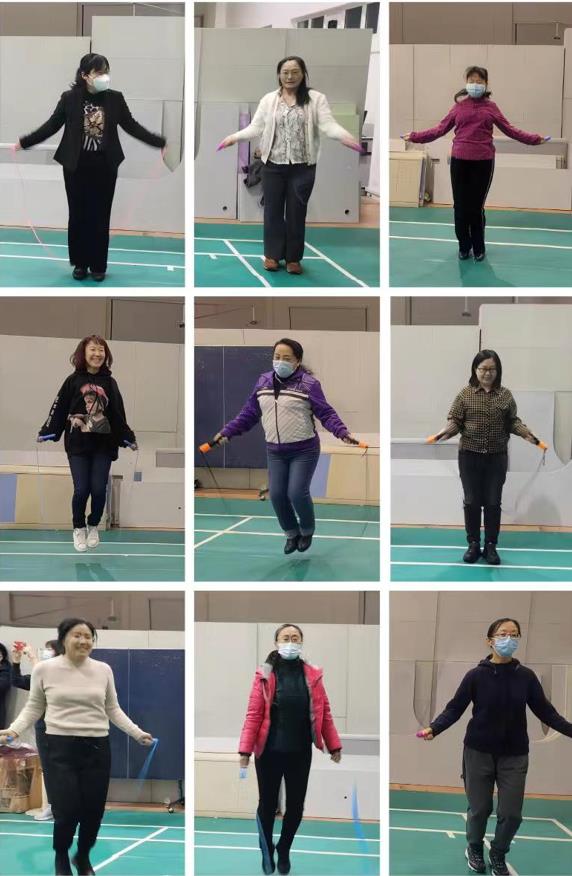 本次跳绳活动全院女教工积极踊跃报名,部分男教工也参与配合摇绳和呐喊助威。首先进行的是一分钟单人跳,场上的女教师精神抖擞、意气风发,大家手中飞舞的彩绳形成了一道亮丽的风景线。集体跳绳环节精彩纷呈、妙趣横生,场上的教师团结协作、齐心协力,矫健的身姿随着翻飞的彩绳上下跃动,大家为了同一个目标共同努力,充分体现出学院教工奋发向上、永不服输的精神风貌。赛场上激情与紧张同在,友谊与竞赛共存,大家挥洒汗水,加油声和呐喊声此起彼伏,气氛热烈、活力无限。