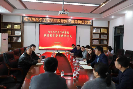 3月15日下午,电气与电子工程学院在教学主楼G1014会议室举行了院教育教学督导聘任仪式。学院党委书记单鹂娜,副院长高俊国,各系主任、副主任参加了仪式。聘任仪式由副院长高俊国主持。
