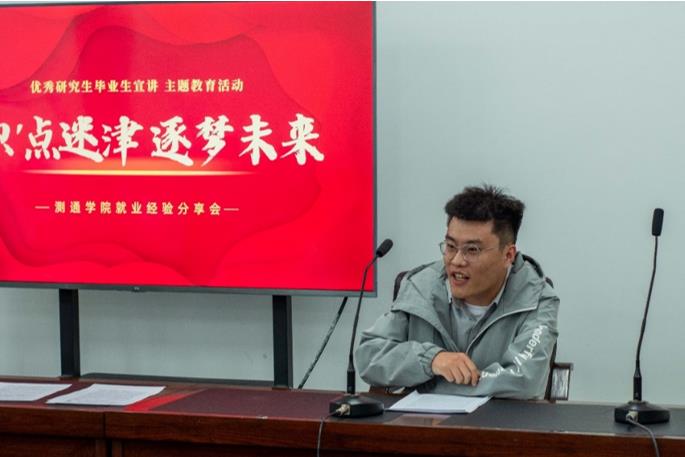 按照学校关于2023届毕业研究生文明离校教育工作的通知要求,挖掘选树一批具有模范引领作用的优秀研究生毕业生,充分发挥学长学姐在专业学习、学术科研、实习实践、就业创业等方面的先进典型影响力和带动力,引导研究生树立正确的就业观、择业观,测通学院于3月21日18时在教学楼E0904通过线上线下相结合的方式开展了“学弟学妹我想对你说”研究生就业经验分享会。测通学院党委副书记张宏磊、研究生辅导员杨胜宝、8名优秀的2023届毕业生以及2021级和2022级100余名研究生参加了本次活动。