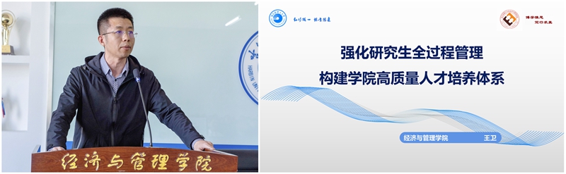 副院长王卫就学院研究生培养工作做出总结和部署。他全面分析了学院各学科的硕博研究生结构和规模,并从招生、课程培养和学位流程三方面深入剖析了研究生全过程管理的关键环节。他强调,选择好的生源是培养优秀研究生的基础,完善本硕博一体化培养体系是关键。他提出,本年度将高质量完成学硕和专硕招生调剂工作,重点落实研究生培养方案修订,并进一步持续优化学院硕博研究生培养流程和质量监控环节。