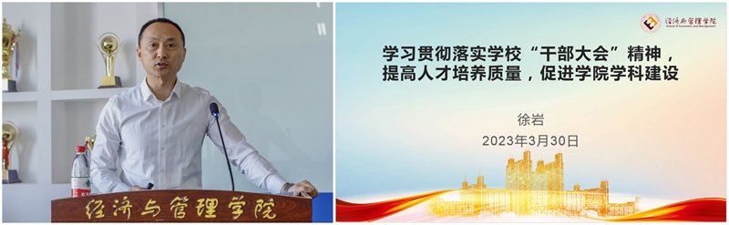党委副书记徐岩指出思政工作是促进学校学科发展、教学评估的现实需求。结合当前学院学生思政工作存在的主要问题,他阐述了加强辅导员业务能力建设、构建全员全方位就业工作体系等工作思路。他强调,在2023年经管学院学工队伍将在校院两级党委领导下继续埋头苦干、真抓实干,推进落实各项工作任务,为学院学科建设工作提供重要支撑。
