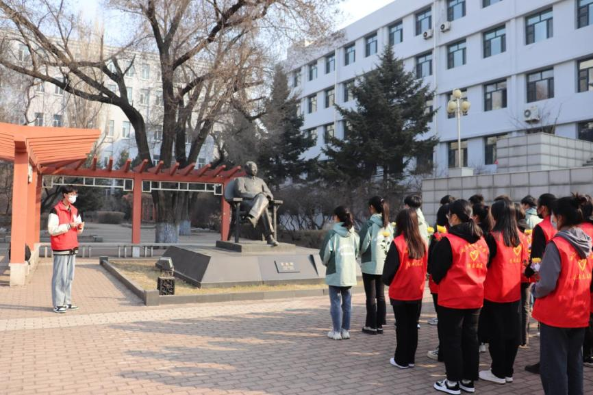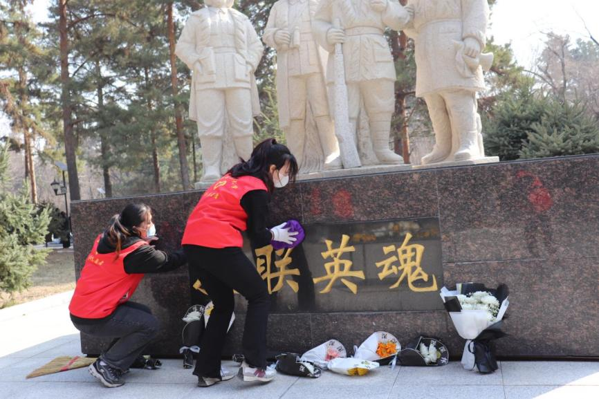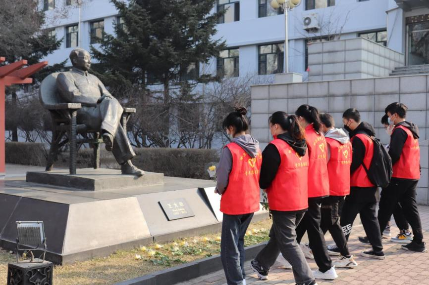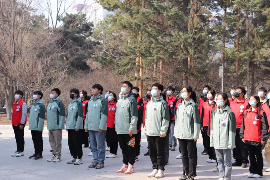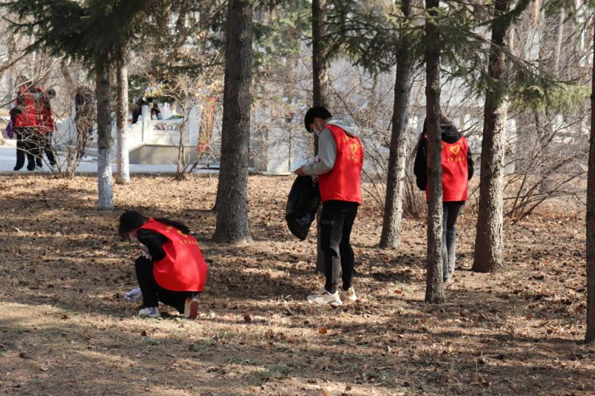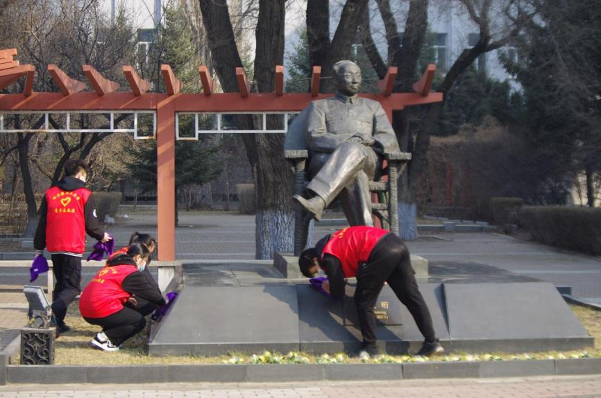 4月2日清晨,“珩星”志愿服务队的40多名志愿者们穿着整洁,队列整齐,来到老校长王大珩先生的雕像前,敬献菊花并深深三鞠躬以表示深切缅怀。志愿者们带着深沉的哀思和无尽的怀念,精心地清扫王大珩雕像及其周围场地。随后志愿者们前往哈尔滨烈士陵园,陵园庄重而肃穆,主持人怀着沉重的心情向革命先烈致以最崇高的敬意。当铿锵的国歌响起,志愿者们面对着五星红旗,全程肃立,奏唱中华人民共和国国歌,那些慷慨激昂的歌词记录的是曾经英烈们英勇斗争的历程,承载着无数不朽的历史与信念,歌声嘹亮响彻整座陵园。以山为灵,以木为魂,全体志愿者向烈士们献上菊花,送上问安,致敬英雄。朵朵菊花,象征着他们心灵的纯净无瑕,象征着他们崇高的品质和无私的精神。缕缕春风,说不及对革命烈士的无限深情,道不尽对烈士英魂的无尽哀思。全体志愿者怀着深切悼念和无限哀思闭眼默哀三分钟,追忆烈士们为如今繁荣祖国做出的不朽贡献。在这三分钟的沉寂中,时间也仿佛凝滞为永恒,整个陵园能感受到的唯有同学们流动着的哀思与跳动着的爱国热情。默哀结束后,由校团委学生志愿服务中心代表与研究生支教团代表进行发言,表达对烈士们的敬意与怀念,也表达作为新时代青年对未来的决心与信念,青山埋藏着忠骨,烈士们的丰功伟绩将永存史册。崇尚英雄才能产生英雄,争做英雄才能英雄辈出。志愿者全体举起右手面对着团旗,跟随着领誓人庄严宣读入团誓词,声如洪钟,铿锵有力的誓词回荡在整个烈士陵园。最后青年志愿者们分头对陵园全域进行卫生服务,清理可见垃圾,对烈士墓碑进行扫尘、擦拭。
