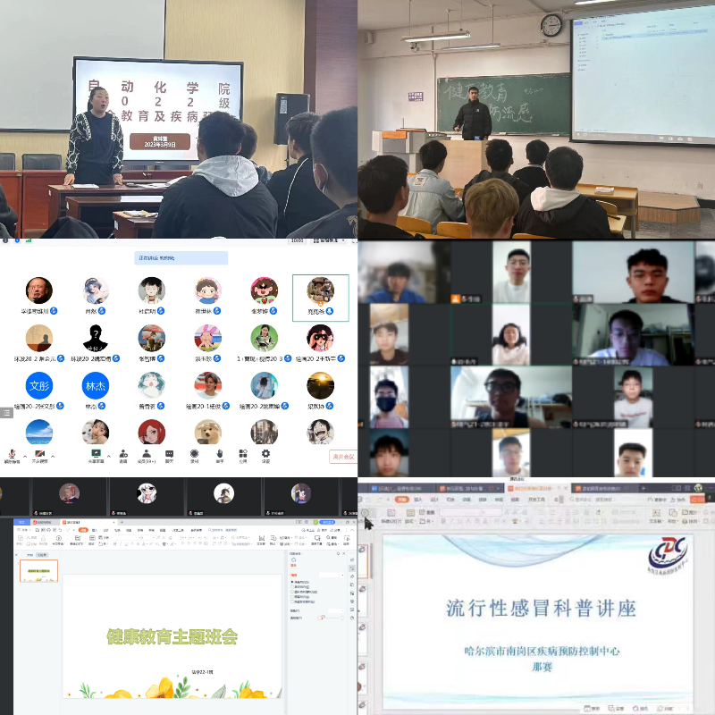 测通学院邀请哈尔滨市南岗区疫病预防与控制中心的讲师通过线上线下相结合的方式为全院师生召开了关于春季流行性感冒的科普讲座,参会人数达1000余人。各学院均多次召开主题班会进行传染病防治知识宣传教育,实现了本科及研究生所有行政班级主题教育活动全覆盖。各位辅导员老师对当前甲流等春季传染病形势及如何有效预防进行了解读分析,明确每位同学都是自身健康的“第一责任人”。此外,材化学院以宣传专栏、告学生书为载体,多渠道向学生进行春季传染病预防知识教育。理学院组织学生干部在学生八公寓门厅绘制预防传染病黑板报,时刻提醒同学们传染病防护不可大意。