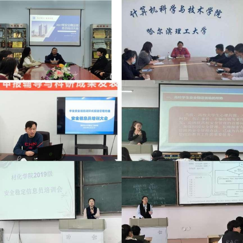安全责任重于泰山。为进一步增强学生安全防范意识,规范安全稳定信息报送的内容和程序,畅通反馈渠道,明确相关责任,最大限度保障校园安全稳定,依据《哈尔理工大学大学学生安全信息闭环式报送管理办法》》(党学字〔2017〕1号),各学院于近期陆续召开了学生安全信息员培训大会暨学生安全信息闭环式报送管理办法培训大会。会议采取线上线下相结合的方式进行。
