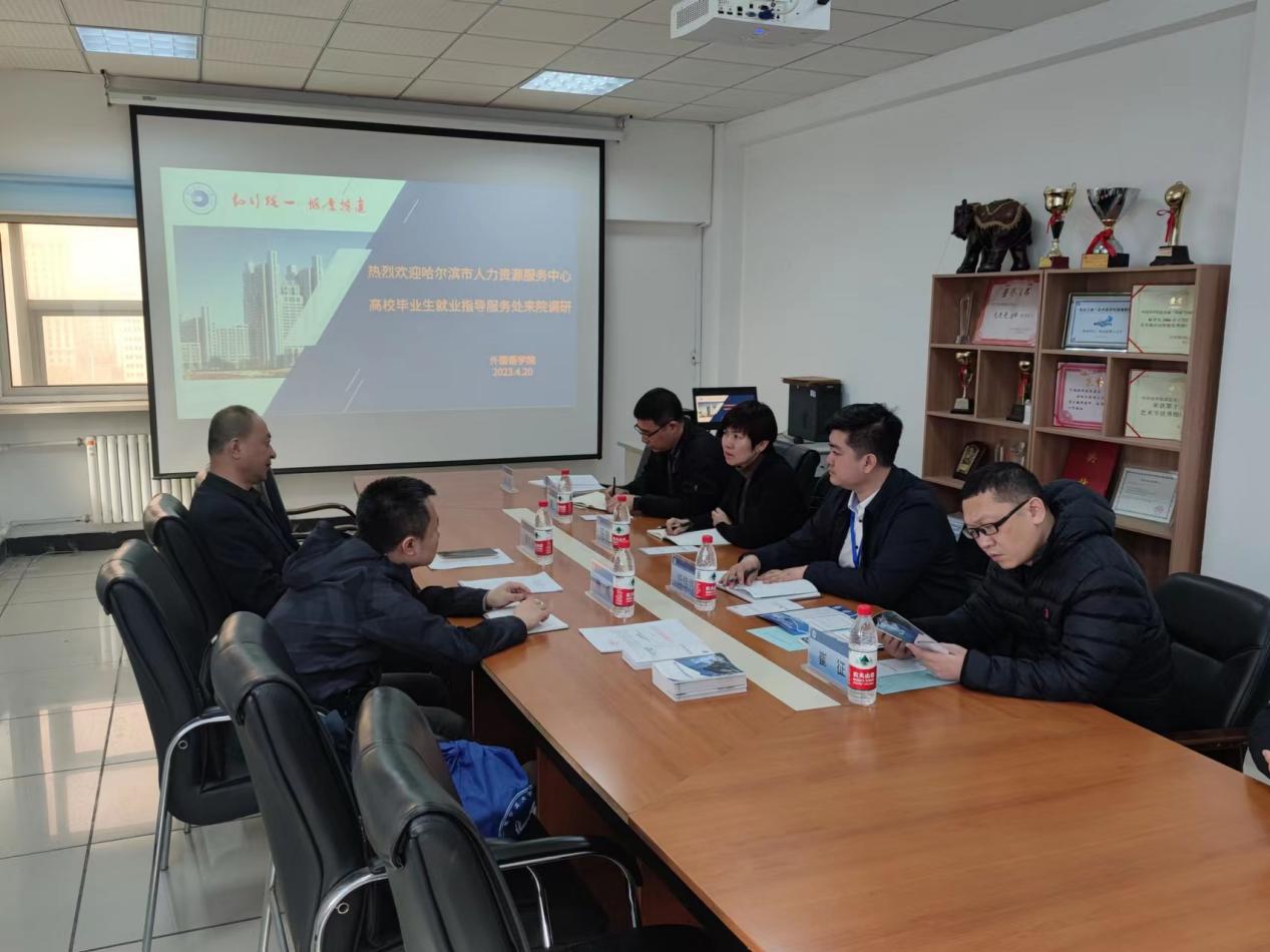 4月20日14时,哈尔滨市人力资源服务中心根据市政协委员马艳辉在第十四届二次会议上的《关于促进高校高质量就业的建议》提案的反馈会在南区1号楼701举行。哈尔滨市人力资源服务中心高校毕业生就业指导服务处处长谭宪秋、二级主任科员杨威,外国语学院院长马艳辉、院党委副书记蔡野、校学生处副处长任佳伟、就业服务管理科科长崔征,外国语学院毕业班辅导员马宁、王梓懿参加了本次会议。