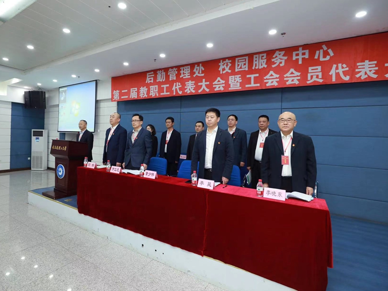 4月17日下午,伴随着雄壮高昂的国歌声,后勤第二届教职工代表大会暨工会会员代表大会(下称“双代会”)在一号教学楼多功能厅召开。后勤党委书记董少伟主持大会并宣布大会开幕,副处长伊立忠作题为《围绕中心,服务大局,为全力提升后勤服务保障水平再立新功》的工作报告。