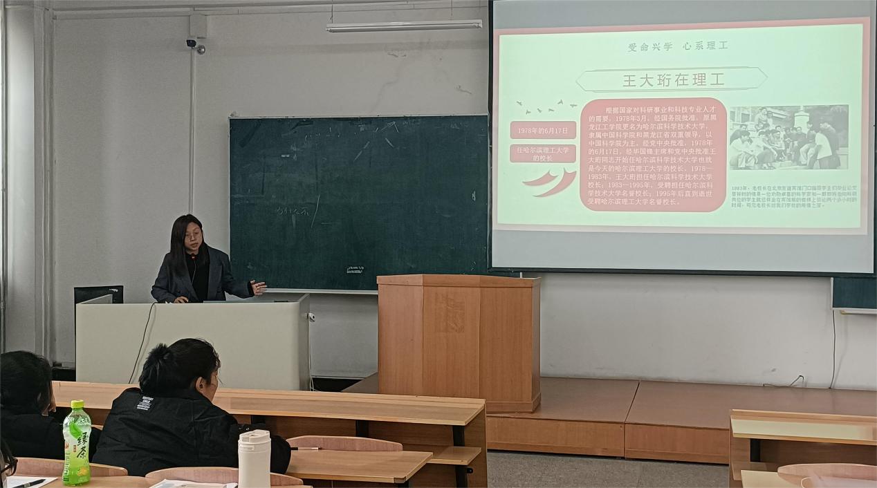 随后,外国语学院党委书记顾大兴为培训班学员进行“回溯历史续初心,薪火相传担使命”首场专题党课培训。顾大兴指出,习近平新时代中国特色社会主义思想是当代中国马克思主义,是中华文化和中国精神的时代精华。全党深入开展学习贯彻习近平新时代中国特色社会主义思想主题教育,总要求是“学思想、强党性、重实践、建新功”,就是要引导广大党员师生深入学习领会习近平新时代中国特色社会主义思想和党的二十大精神,坚持学思用贯通、知信行统一,始终保持统一的思想、坚定的意志、协调的行动、强大的战斗力。2023年是学校学科建设发力年,也是学院深入实施“十四五”规划承上启下的关键一年,外国语学院党委将积极落实学校党委要求,认真组织开展学习贯彻习近平新时代中国特色社会主义思想主题教育,同学们要珍惜本次培训提升思想的机会,努力把主题教育所激发的强大动力转化为新时代学生党员的实际行动,展现理工青年的新担当、新作为。顾大兴强调,哈尔滨理工大学能取得今日如此辉煌的成就,离不开每一代理工人的努力。站在新的历史交汇处,新时代理工青年更要以习近平新时代中国特色社会主义思想为指引,学习并弘扬“大珩精神”,感悟七十余载辉煌历史的同时,明确新时代奋斗目标,增强作为一名理工人的使命感和责任感,不断提高自己、完善自己、经受住各种考验,不断坚定理想信念、提高政治素养、锤炼道德操守、提升思想境界,努力成为堪当大任的栋梁之才,以更加坚定的信念、脚踏实地走好未来的每一步。