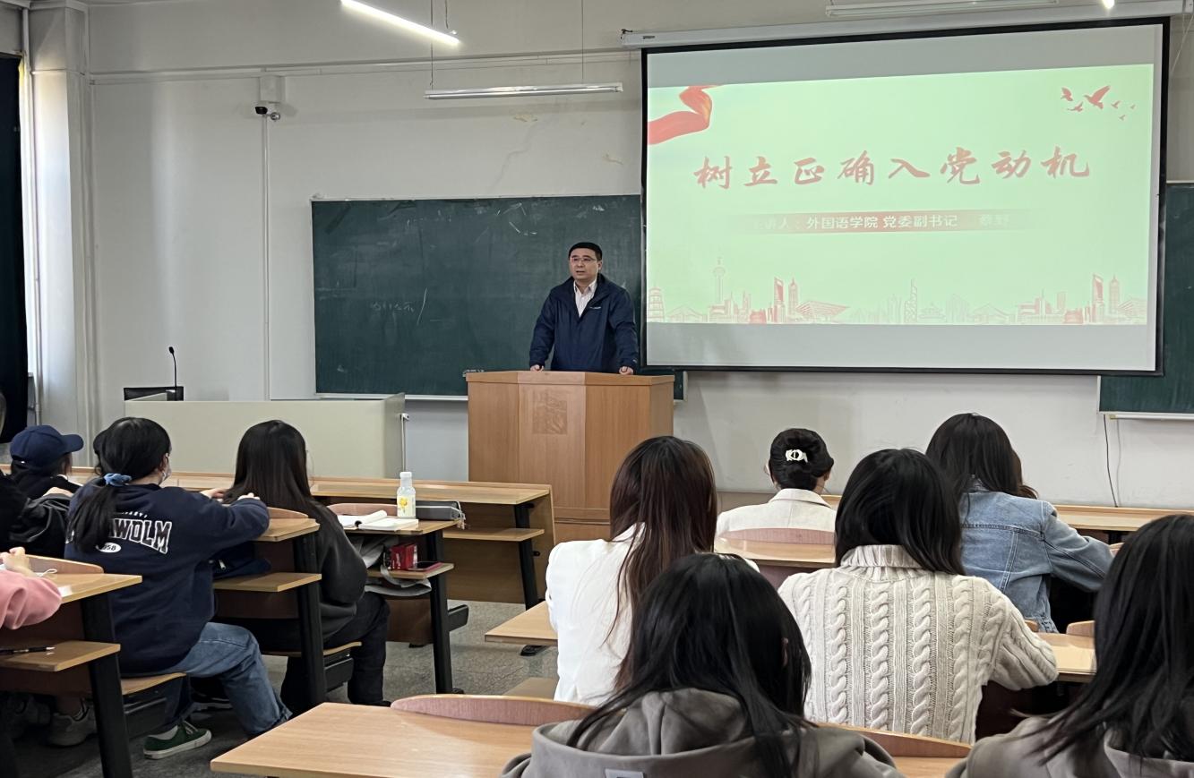 24日中午,外国语学院党委副书记兼副院长蔡野为培训班学员讲授“树立正确入党动机”专题党课。蔡野指出,要想成为一名优秀的大学生党员,必须首要明确的是如何树立正确的入党动机,正确的入党动机,是正确行动的推动力量。作为新时代的合格党员,要有为共产主义事业奋斗终身的坚定信念,要有全心全意为人民服务的崇高理想,要有在学习、工作和社会生活中起先锋模范作用的觉悟,早日成为一名光荣的共产党员。