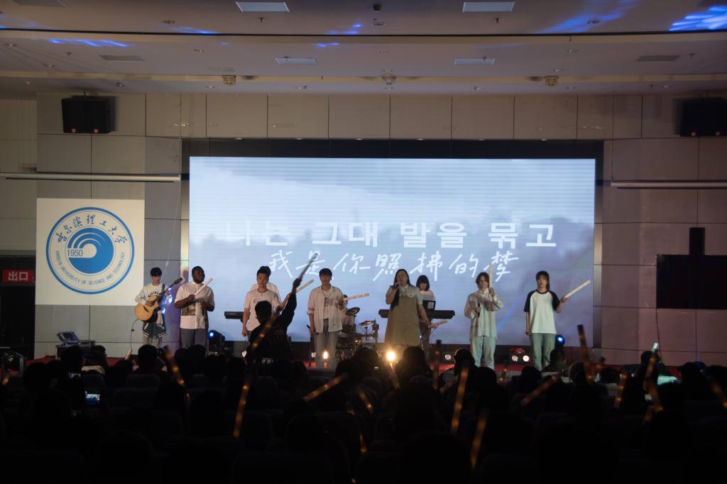 更值得为之喝彩的是计算机科学与技术学院代表队队员郭伯宇、陈志权和孙赫为大家带来英文歌曲《500 miles》,向大家展现了理工学子的语言风采。