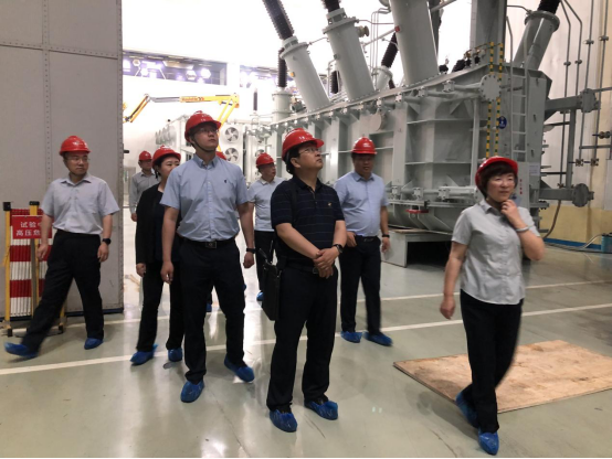 在吴变集团,电气学院领导老师首先参观了吴变集团特高压变压器生产车间,深入了解吴变集团企业文化与核心业务板块。