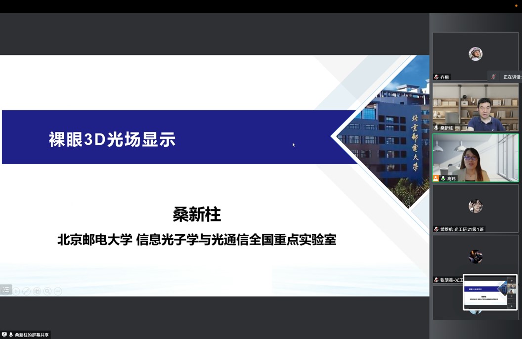 5月16日下午1点30分,高玮教授主持了本次活动的线上学术报告会。本次学术报告会分别邀请到北京邮电大学信息光子学与光通信国家重点实验室的桑新柱教授和浙江大学物理学院、光电学院双聘教授阮智超教授。